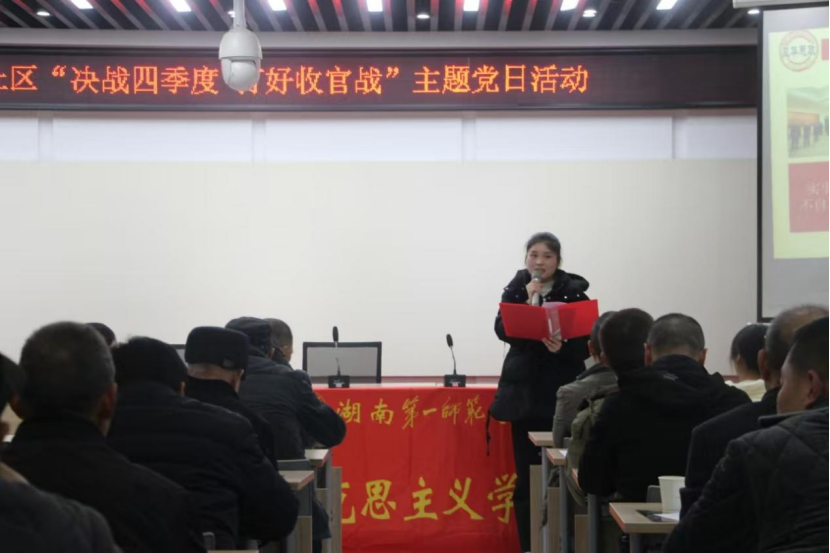 12月12日晚,三亿体育理论宣讲团受邀来到梅溪湖街道润龙社区上党课。宣讲团成员为社区100来名党员讲授了“青年毛泽东成长成才路”“重走习近平总书记考察湖南足迹”两堂微党课。“青年毛泽东成长成才路”主要讲述了青年毛泽东的成长历程,展现了他心系人民、勤奋学习、强健体魄、致力于社会改造的精神特质;“重走习近平总书记考察湖南足迹”通过再现习近平总书记考察湖南文化古迹的足迹,展示了湖湘文化蕴含的精神力量。