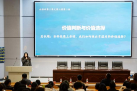 文雪颖老师首先围绕“价值判断和价值选择”的主题,以议题的形式展开高中思政课堂,通过调查问卷导入“何为价值选择”问题,再带领同学们分析问卷数据,由问卷数据得出价值判断和价值选择的三个特征,回答了“如何做出正确的价值判断和价值选择”的问题。