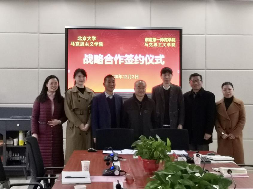 合作签约仪式上,彭小奇代表公司对北大马院与一师马院开展战略合作表示欢迎和支持。希望双方充分发挥优势,相互促进,共同发展。期待签署战略合作协议后,北大马院给予一师马院更多实质性支持和帮助,支持主席母校办好马院,办强马克思主义理论学科。