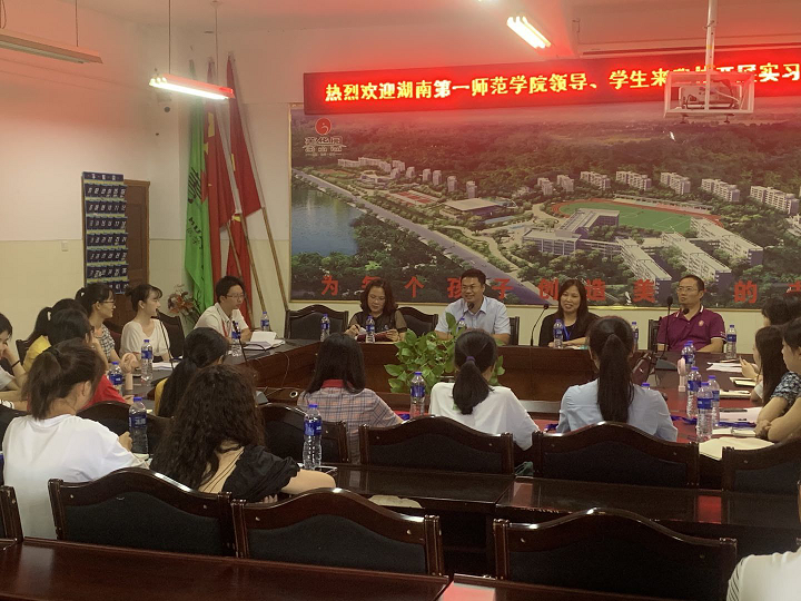 为促进教育实习工作的有效开展,9月8号上午,三亿体育官网郴州市一中菁华园公司实习队见面会在菁华园公司综合楼三楼会议室隆重举行。会议由菁华园公司刘红梅书记主持,出席会议的有菁华园董事长杨闰平、副董事长宋海平、教务主任黎向国、主任张青花以及湖南一师实习带队老师杨秀云。参加会议的还有菁华园公司的其他领导和科任实习指导老师,以及19名来自湖南一师的顶岗实习生。