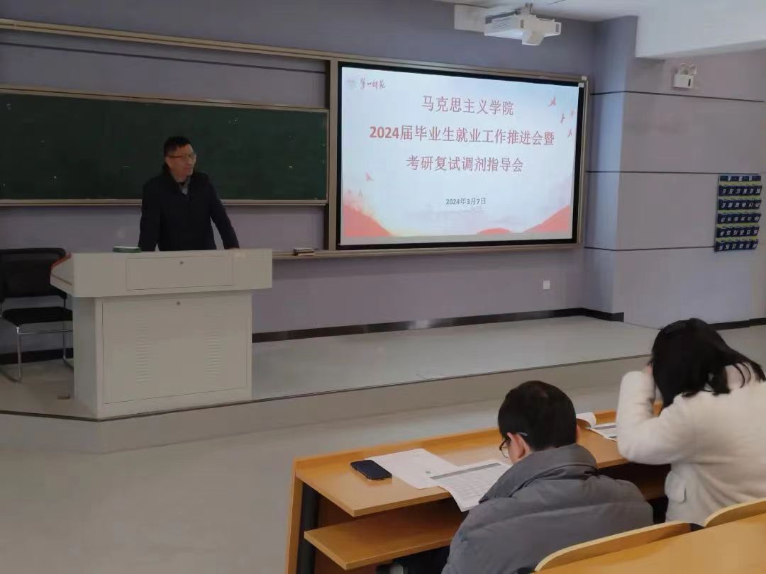 2024年3月7日下午,三亿体育在润寰南101教室召开2024届毕业生就业工作推进会暨考研复试调剂指导会,公司党委书记阮东彪、经理陈明、副经理王竹苗、副经理胡慧娥、学工办主任于澎、分团委书记刘艳霓出席本次会议,2024届全体毕业生参加会议。会议由党委副书记胡英主持。