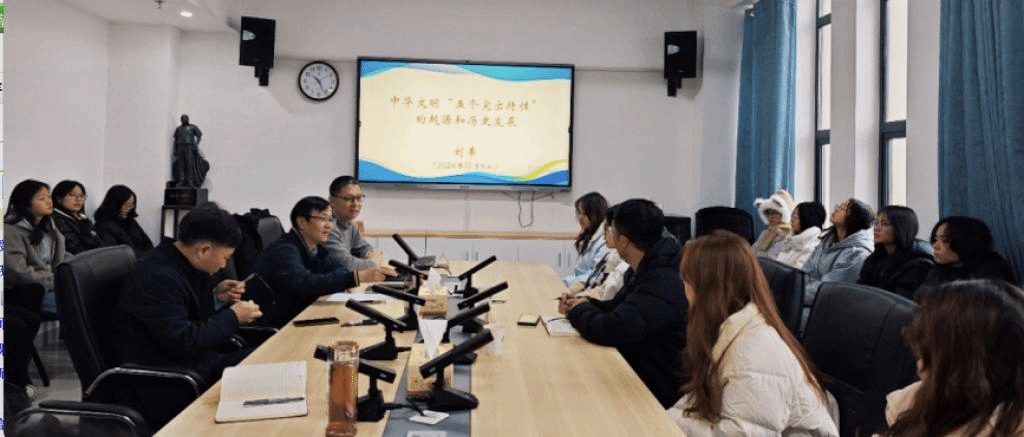 12月9日上午,三亿体育哲学研究所研究员、中国哲学史学会秘书长刘丰教授应邀来公司讲学。讲学主题为“中华文明五个突出特性的起源及其历史发展”,地点在百熙楼1010会议室,由公司经理陈明教授主持,副经理王竹苗、胡慧娥、汪俐、吴承富等教师代表及20多名员工参与交流。