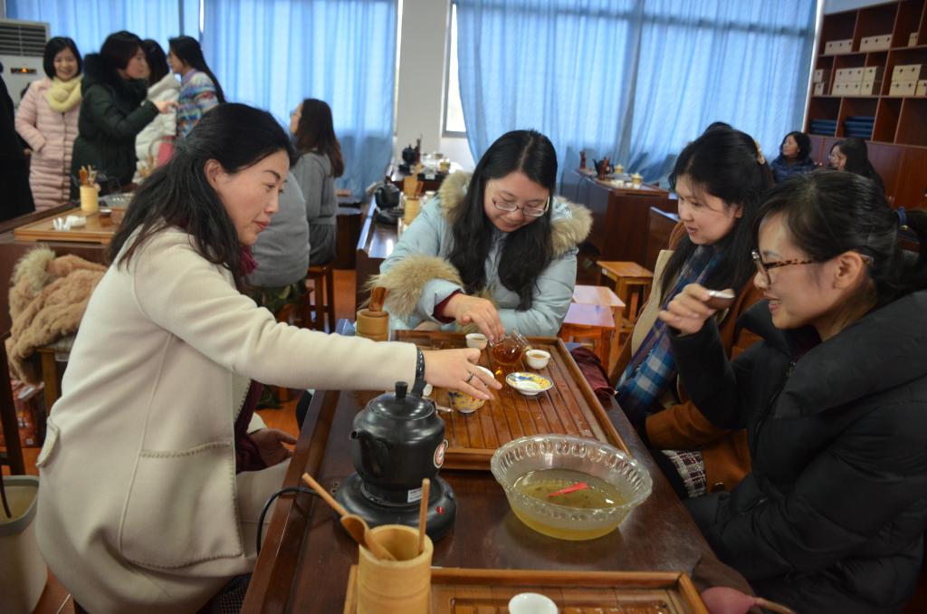 讲座由商公司毛晨岚老师主持,并由音舞院师生在旁弹奏古筝伴奏,室内乐音雅致、茶香四溢。全校数十名女教职工热心参与,在学习茶道、品鉴好茶的过程中,共同度过了一段美好而难忘的时光。