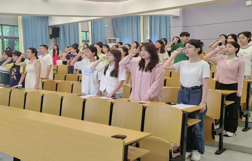会议第二部分,徐雪情等12名预备党员依次上台,从理论学习、政治觉悟、思想认知、工作生活等方面向党组织汇报本人在预备考察期间的表现,充分表达了对党的坚定信仰和为党的事业奋斗终身的决心。经全体正式党员无记名投票表决,大会一致同意12名预备党员按期转为正式党员。在党支部书记刘艳霓的带领下,新党员同志佩戴党徽面向党旗庄严宣誓。
