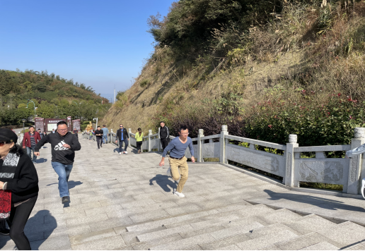 在感悟先辈们的革命精神的同时,大家尽情领略秋日美景。兴奋的表情,亲密的交谈,欢声笑语不断,整个登山过程充满了温馨与欢乐。陈明经理和陈辉吾老师还开启了竞赛模式,一路小跑,二人率先来到了山顶。其他老师也不甘示弱,顾不上汗流满面,紧随其后,兴致勃勃也都到达了山顶,充分展现了一师马院教师的激情与活力。“是真高敞处,别有大乾坤”,“更倚天门看城市,茫茫平地皆云烟”,的确,身居高处,天高云淡自是一番好滋味。