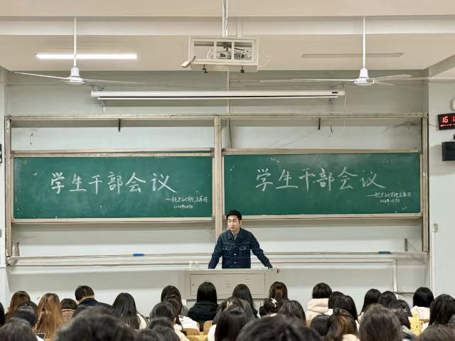 学工办主任于澎布置具体工作安排。于老师着重强调了校园安全的重要性,指出“安全问题无小事,必须给予高度重视”。他要求,员工干部要发挥带头表率作用,严格遵循公司关于校园安全的纪律规定;员工干部要尽职履职,做好寝室和班级管理工作;员工干部要成为师生沟通的桥梁,关注同学们的心理状况并及时给予帮助和鼓励。