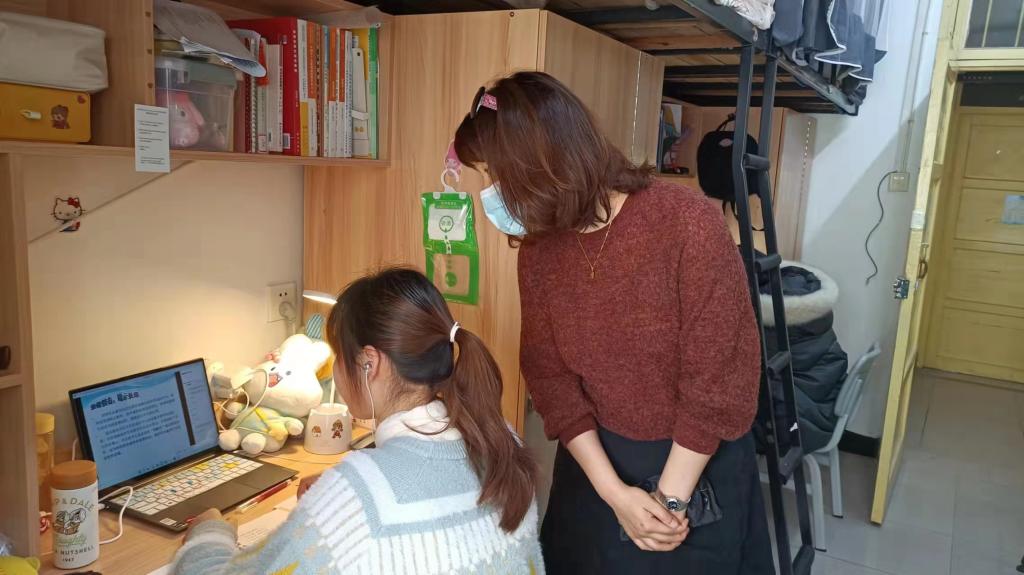 4月6日下午,马克思主义公司党委副书记胡英、学工办刘艳霓深入员工宿舍,了解同学们疫情防控、线上课程以及学习生活等情况。胡英书记提醒同学们网课期间也要高度重视疫情防控,做好寝室消杀、勤通风,坚持个人防护不放松。同时要调整好心态和线上学习的状态,以清醒的头脑高效投入网课学习。