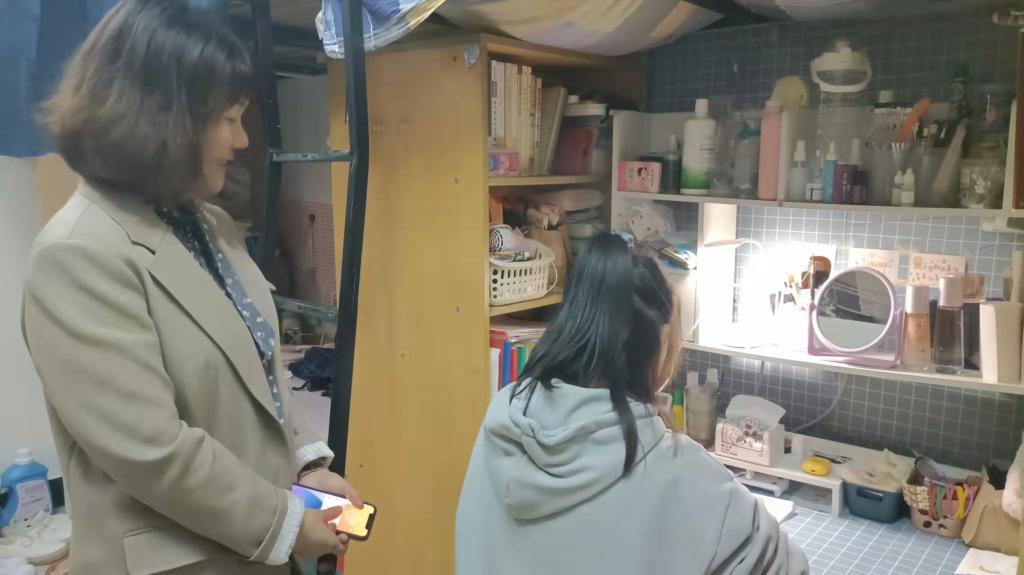 4月18日晚,为了解员工的学习和生活情况,马克思主义公司党委副书记胡英和辅导员刘艳霓深入走访了11栋员工宿舍,与同学们进行谈心谈话。胡书记和刘老师全面检查了同学们的内务整理情况,并叮嘱同学们要保持健康生活作息和良好生活习惯,日常生活中多交流、共成长,互帮互助、和睦相处,营造友爱和谐的寝室氛围,打造文明卫生寝室。