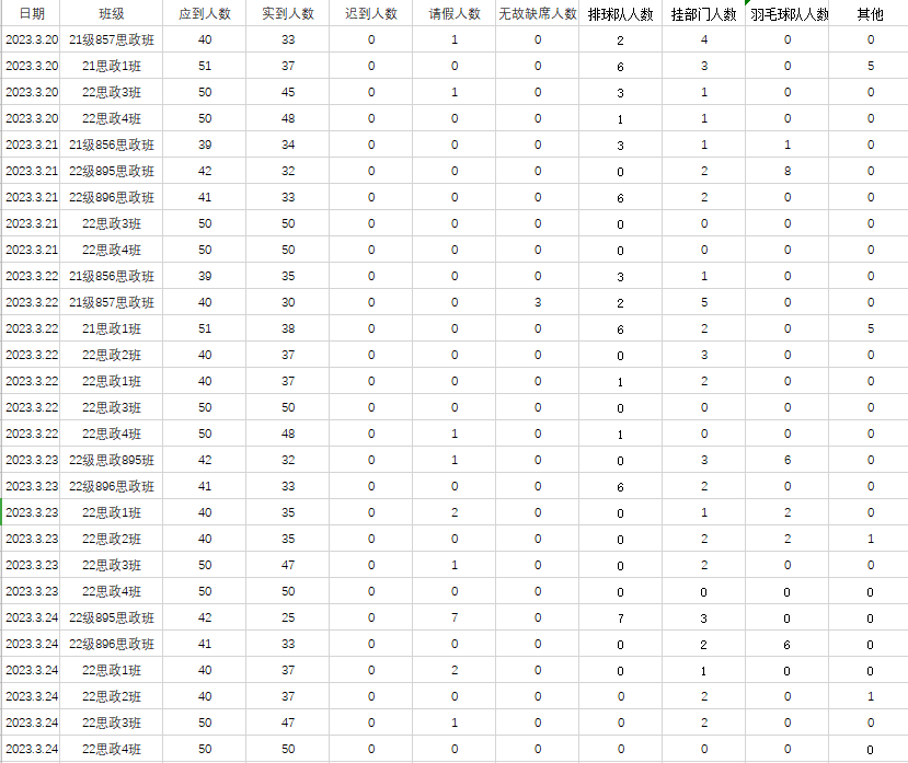本周早自习情况总体良好,但仍有个别同学未按时参加早自习,名单如下:22思政3班44号葛翔宇。对这位同学予以扣除德育分两分处理,望其他同学引以为戒。
