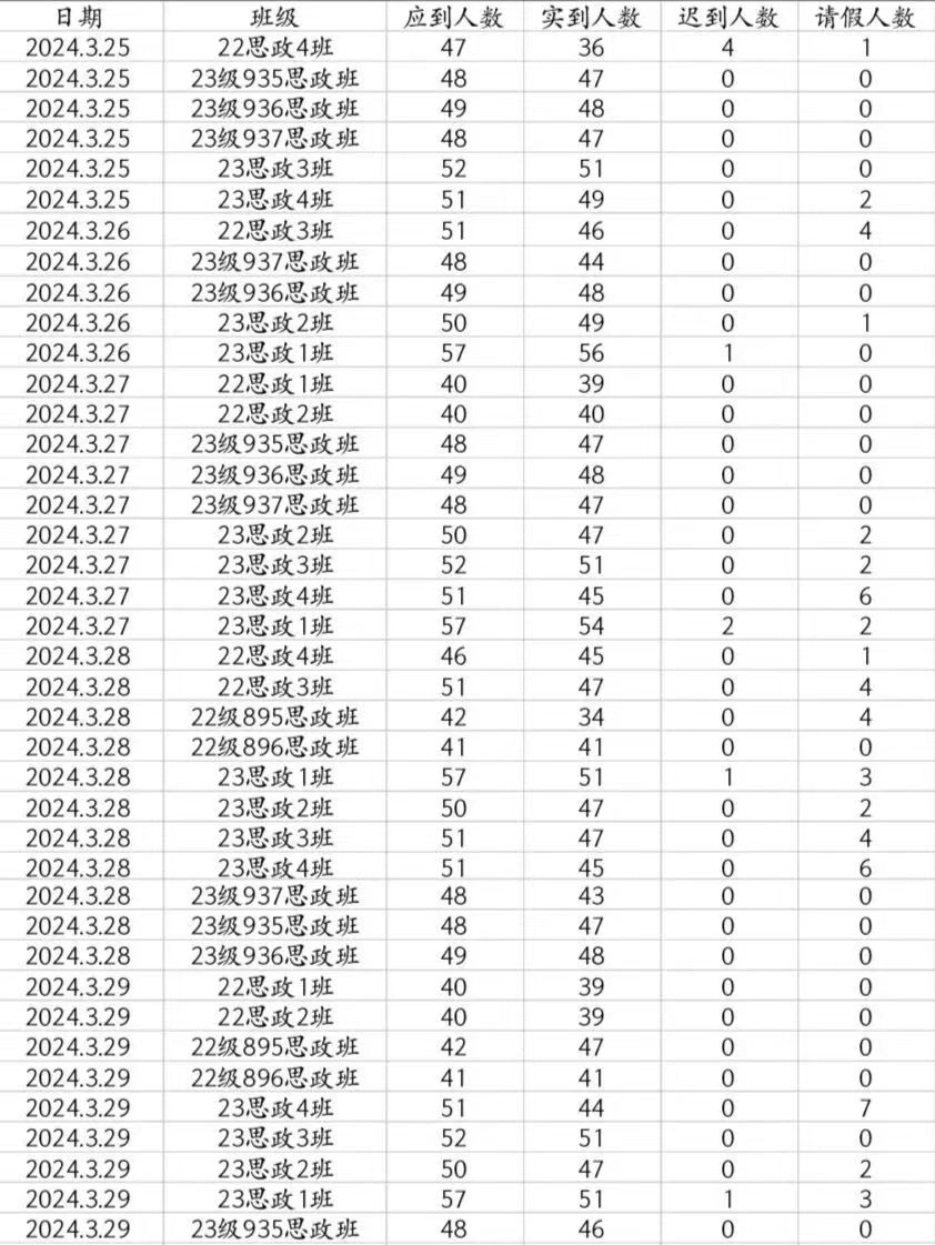在本次青年大学习中,21级857思政班、22思政1班、22思政2班、22思政3班、22思政4班、22级895思政班、23思政1班、23思政2班、23思政3班、23思政4班、23级935思政班、23级936思政班学习率达到了100%,在这里提出表扬;