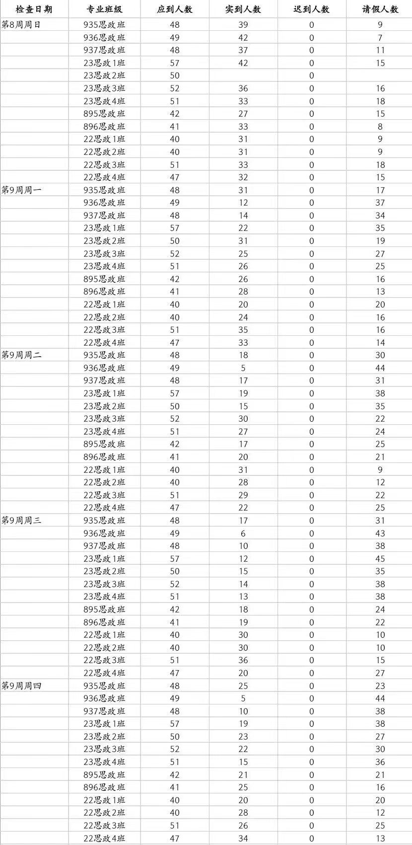 23思政3班旷课:8号金智贤、9号向颜、40号周顺翔、41周家利、42管文博、43吴政航、47盛宇琪、49欧阳文明
