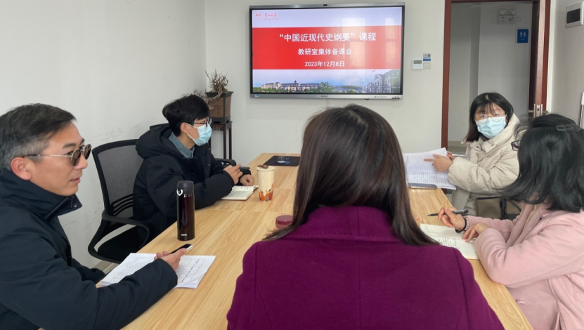2023年12月12日下午,公司“中国近现代史纲要”课教研室开展教研活动。易明老师担任主持人,张晓燕老师、黄召凤老师担任主要评议人,马克思主义公司党委书记阮东彪参会指导。